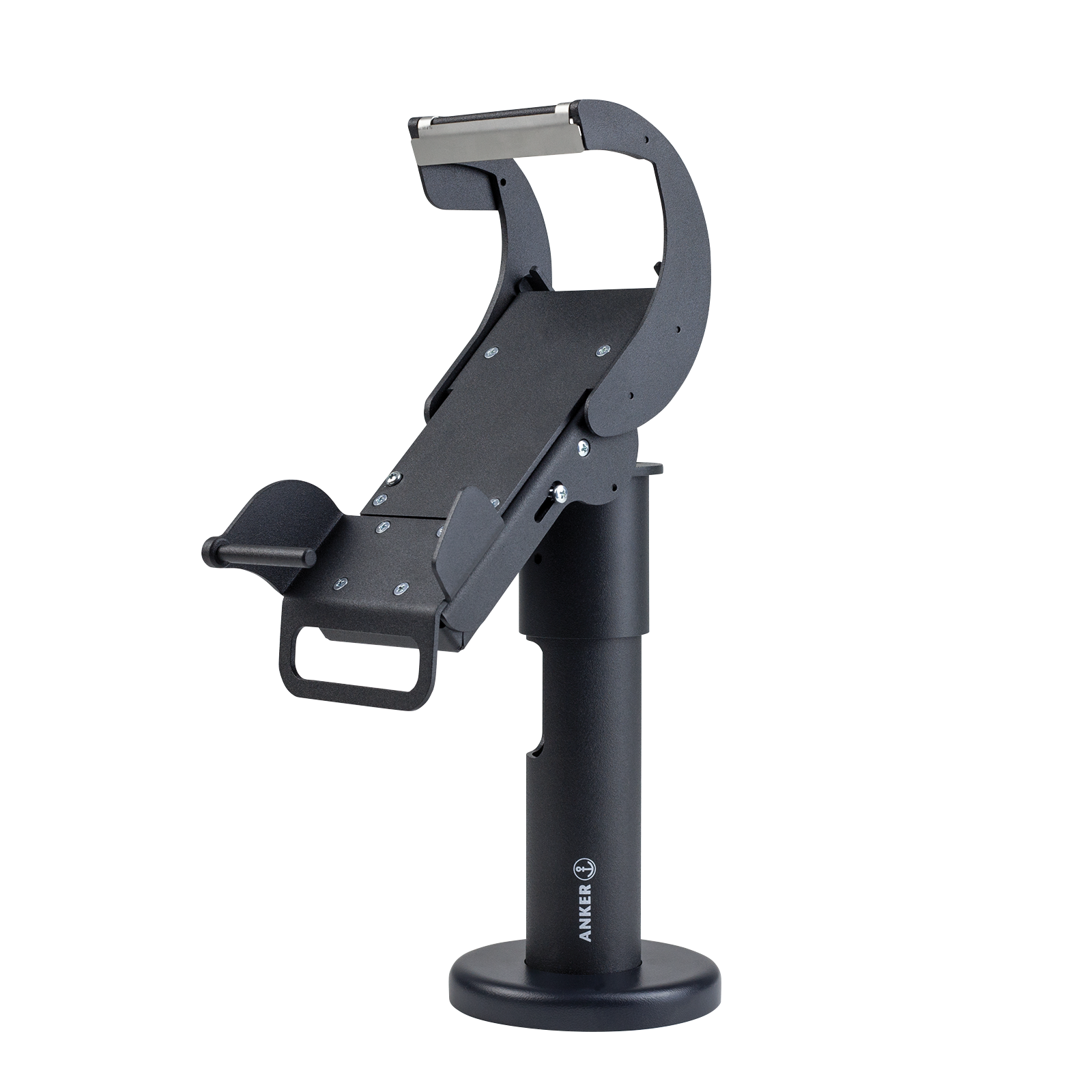 Die Poles von ANKER weisen daher eine ganze Reihe von Schutzmaßnahmen gegen Manipulation auf, angefangen bei der äußerst stabilen Konstruktion aus verzinktem, pulverbeschichtetem und zwei Millimeter starkem Stahl – komplett Made in Germany. Alle Elemente des Standfußes wurden auf maximale Stabilität ausgelegt.Je nach individuellem Bedarf wählen Sie aus verschiedenen Halterungen die Sicherheitsstufen »Medium« oder »Hoch«. Die Medium-Variante verfügt über einen mechanisch verriegelten Metallbügel, der ohne den Schlüssel nur mit äußerster Gewalt zu öffnen ist. Da ein solcher Versuch nicht nur viel Mühe und Zeit kostet, sondern auch zu unübersehbarer Beschädigung führt, macht diese Sicherheitsmaßnahme eine erfolgreiche – also unbemerkte – Manipulation praktisch unmöglich. Halterungen der Stufe »Hoch« sind zudem mit einem Sicherheitssteckschloss ausgestattet, um das Kartenlesegerät zusätzlich gegen unberechtigten Zugriff zu schützen. Die Aufnahme lässt sich nicht ohne Schlüssel öffnen. Die Poles werden fest am Kassentisch – oder bei Bedarf an einem anderen Ort – montiert und lassen sich somit auch nicht im Ganzen entfernen. Zukunftssicher: Aufgrund der modularen Bauweise der Poles muss bei einem Terminalwechsel nur die für das Terminal typische Aufnahme ausgewechselt werden – die anderen Komponenten lassen sich weiterverwenden.Das pulverbeschichte Rohrsystem, auf dem die Zahlungsterminalhalterung sitzt, ist nicht nur robust, sondern auch praktisch: Im Inneren bringen Sie sämtliche Strom- und Verbindungskabel unter und sorgen so für einen aufgeräumten und attraktiven Kassenplatz. Außerdem reduzieren Sie so die Möglichkeit einer Beschädigung durch Abnutzung oder gar Kabelbruch. Auch größere Stecker lassen sich bequem im Inneren des Rohres unterbringen und sind somit ebenfalls geschützt.